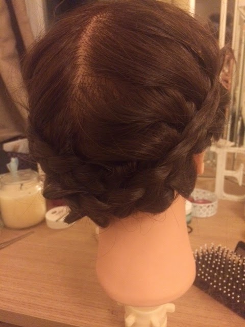 long hair, take the bottom of the plait that is away from the head and wrap it